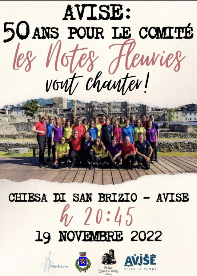 19 novembre h 20.45 Chiesa di San Brizio Concerto Les Notes Fleuries per i 50 anni del Comité des Traditions d'Avise