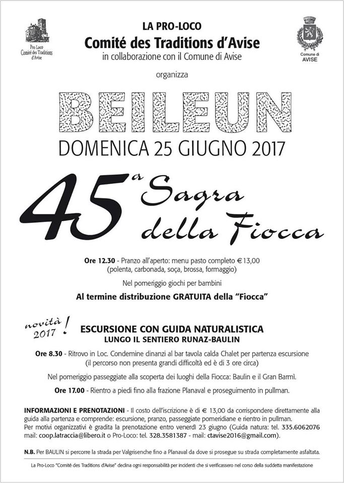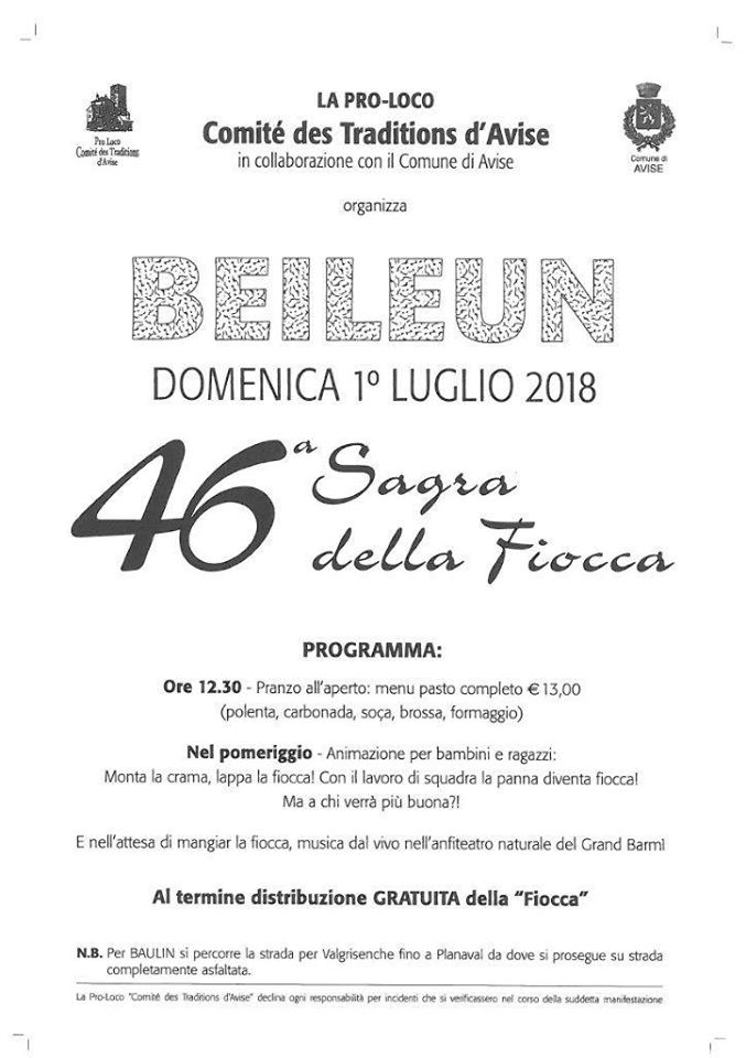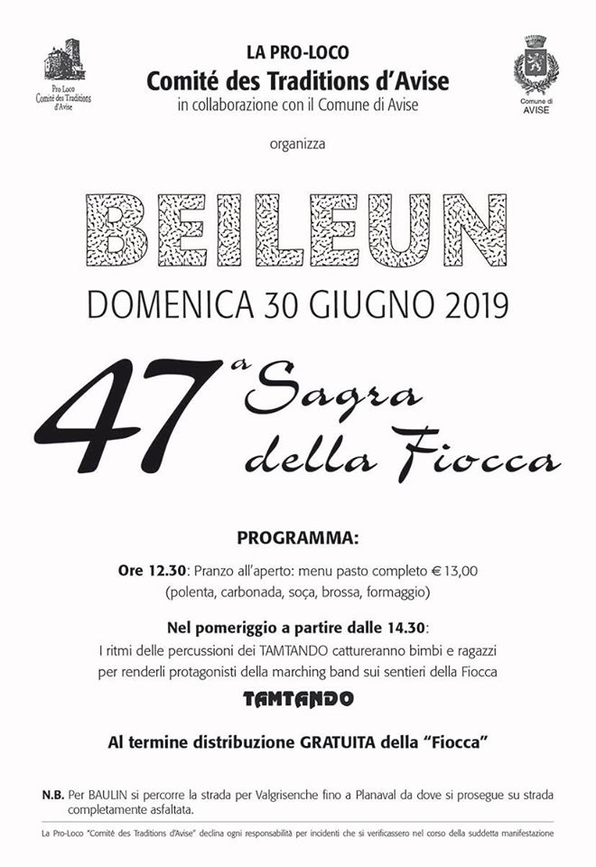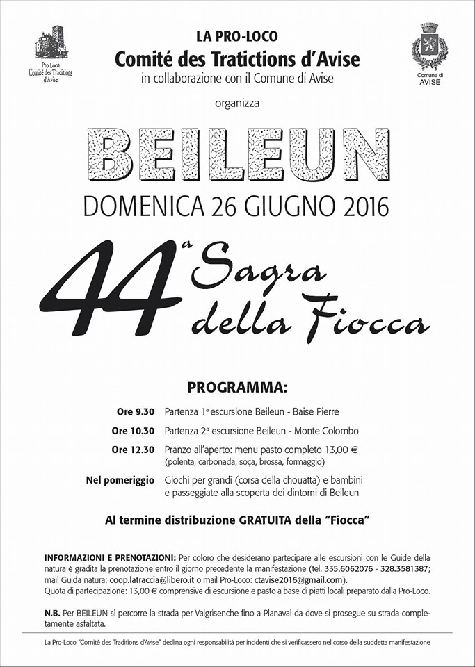 Da qui è nata l’idea del Comité des Traditions d’Avise di allestire una vera e propria manifestazione per la sagra della Fiocca. Dal 1972 la pro loco ripropone la festa rinnovandola con giochi per grandi e piccini, ma tenendo invariata la tradizione della panna montata rigorosamente a mano con fruste di betulla all'interno delle grotte. Il clou della manifestazione è costituito dalla distribuzione gratuita della “fiocca”.