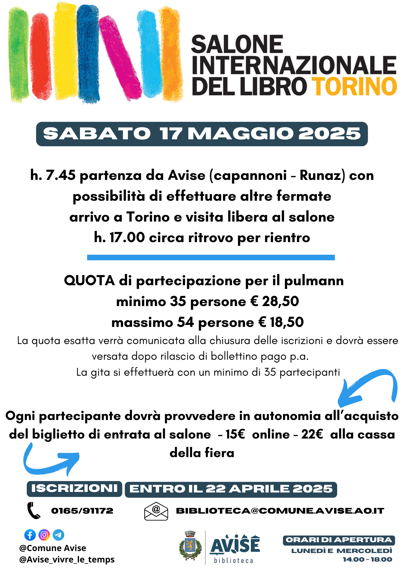 In allegato la locandina dell'uscita al Salone del libro di Torino organizzata dalla Biblioteca comunale