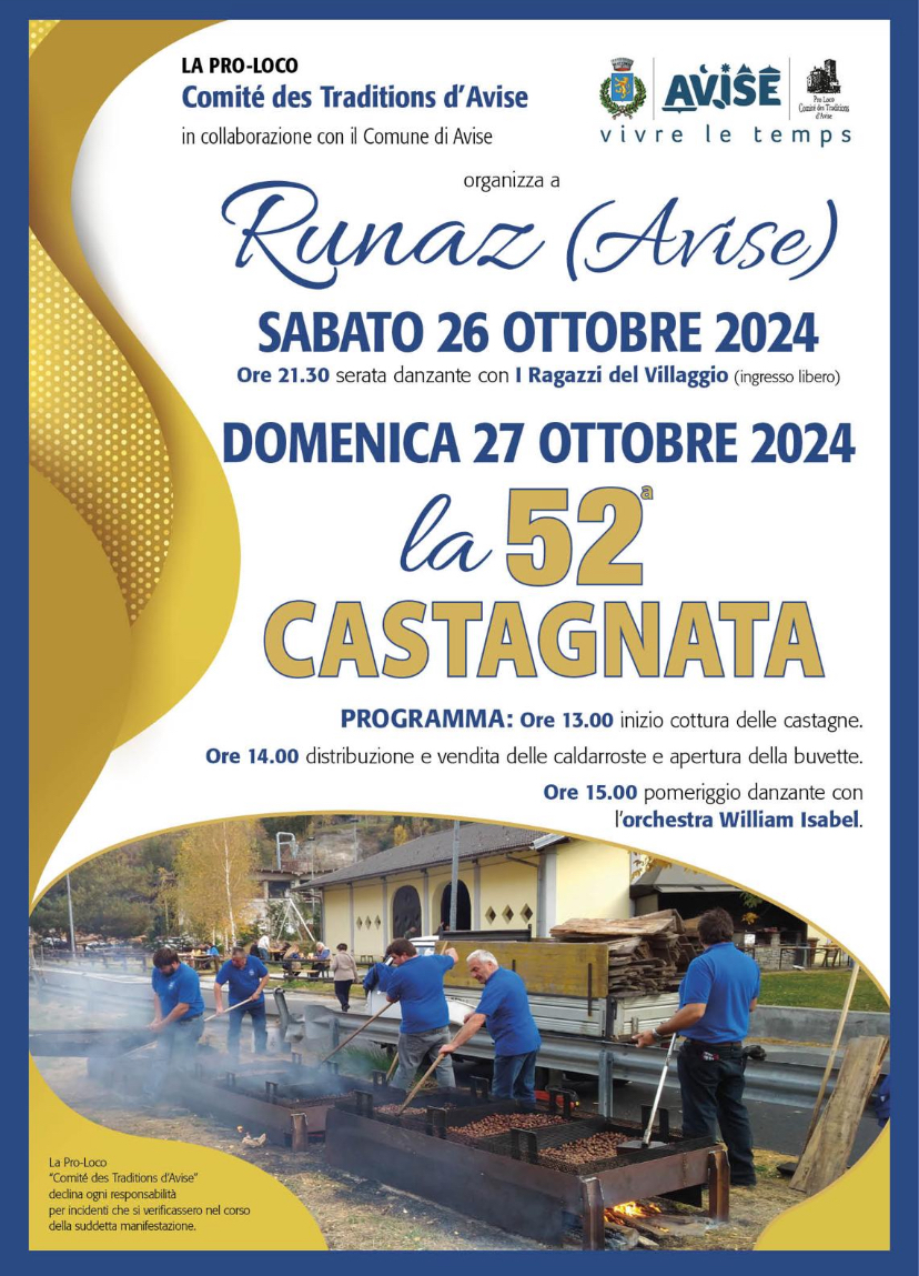 In allegato la locandina della 52esima Castagnata a Runaz