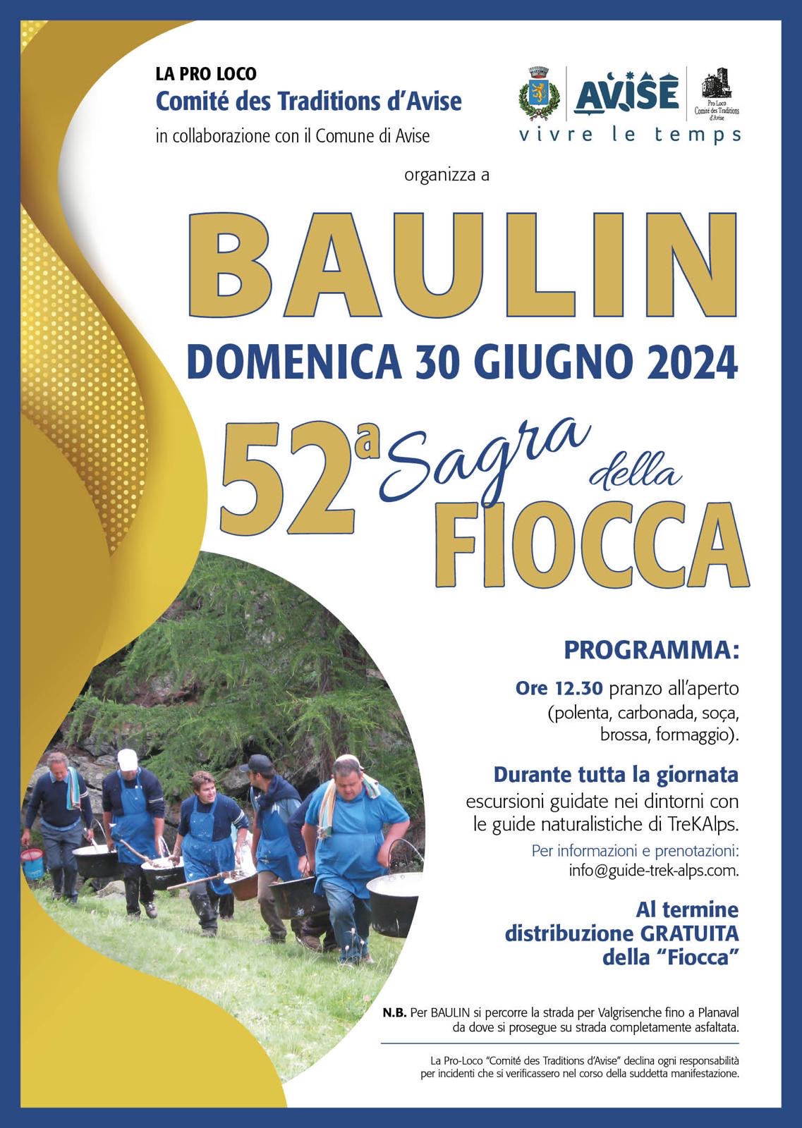 In allegato la locandina della 52esima Sagra della Fiocca a Baulin domenica 30 giugno