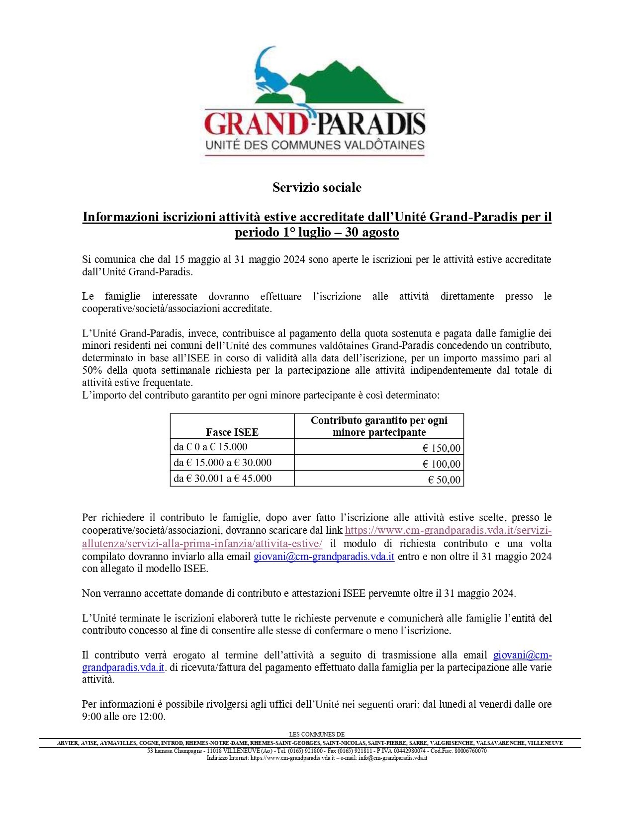 In allegato le informazioni relative alle attività estive Grand Paradis