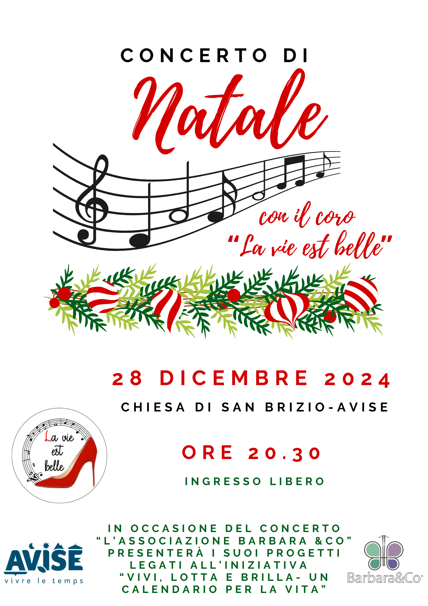 In allegato la locandina del Concerto di Natale con il Coro "La Vie est belle" e presentazione del progetto "Vivi, lotta e brilla: un calendario per la vita"