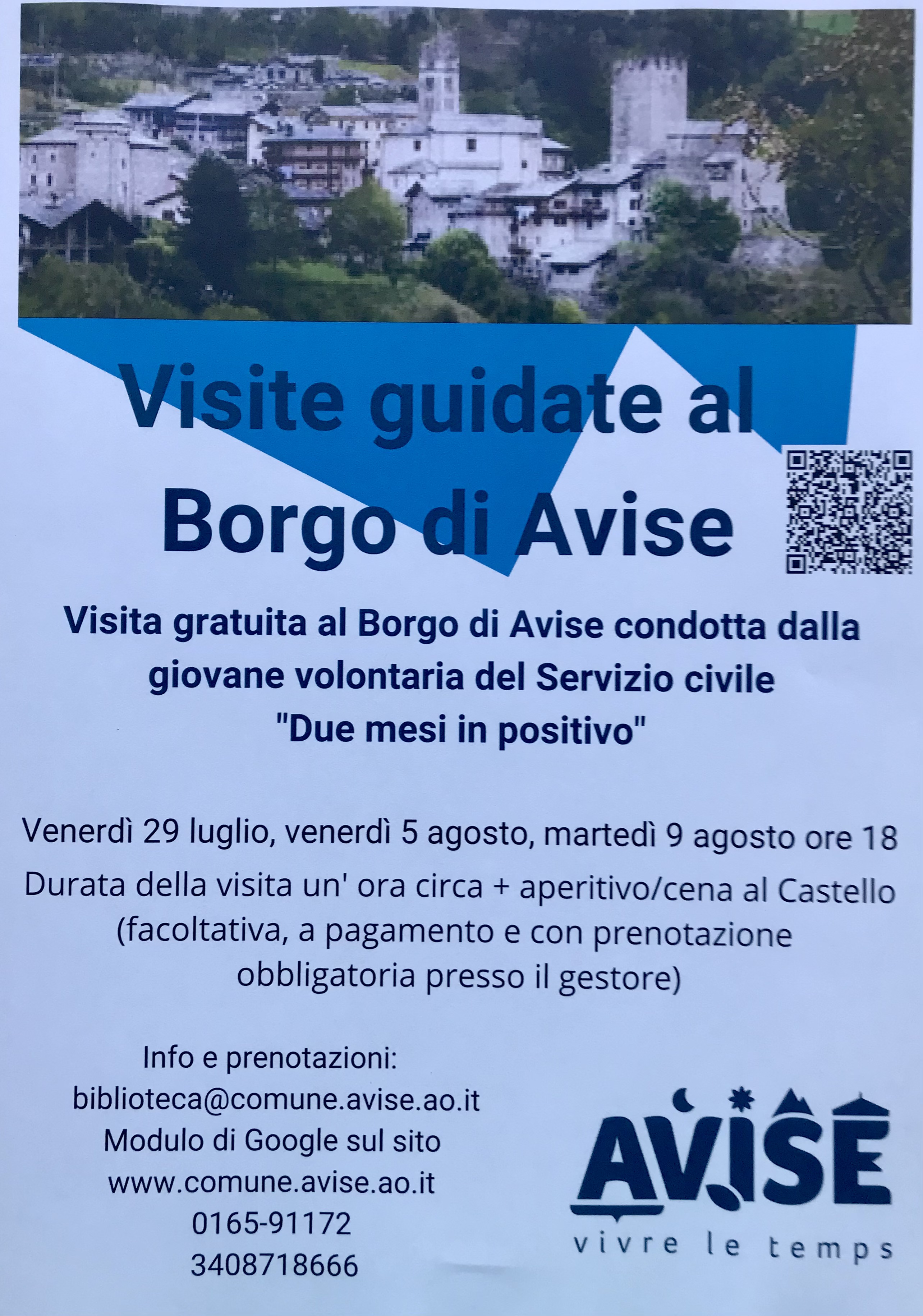 Informazioni: Biblioteca comunale 0165-91172, biblioteca@comune.avise.ao.it, 3408718666