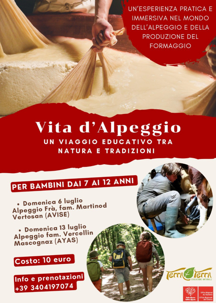 In allegato la locandina dell'iniziativa prevista per bambini dai 7 ai 12 anni il 6 luglio 2025 - Vallone di Vertosan