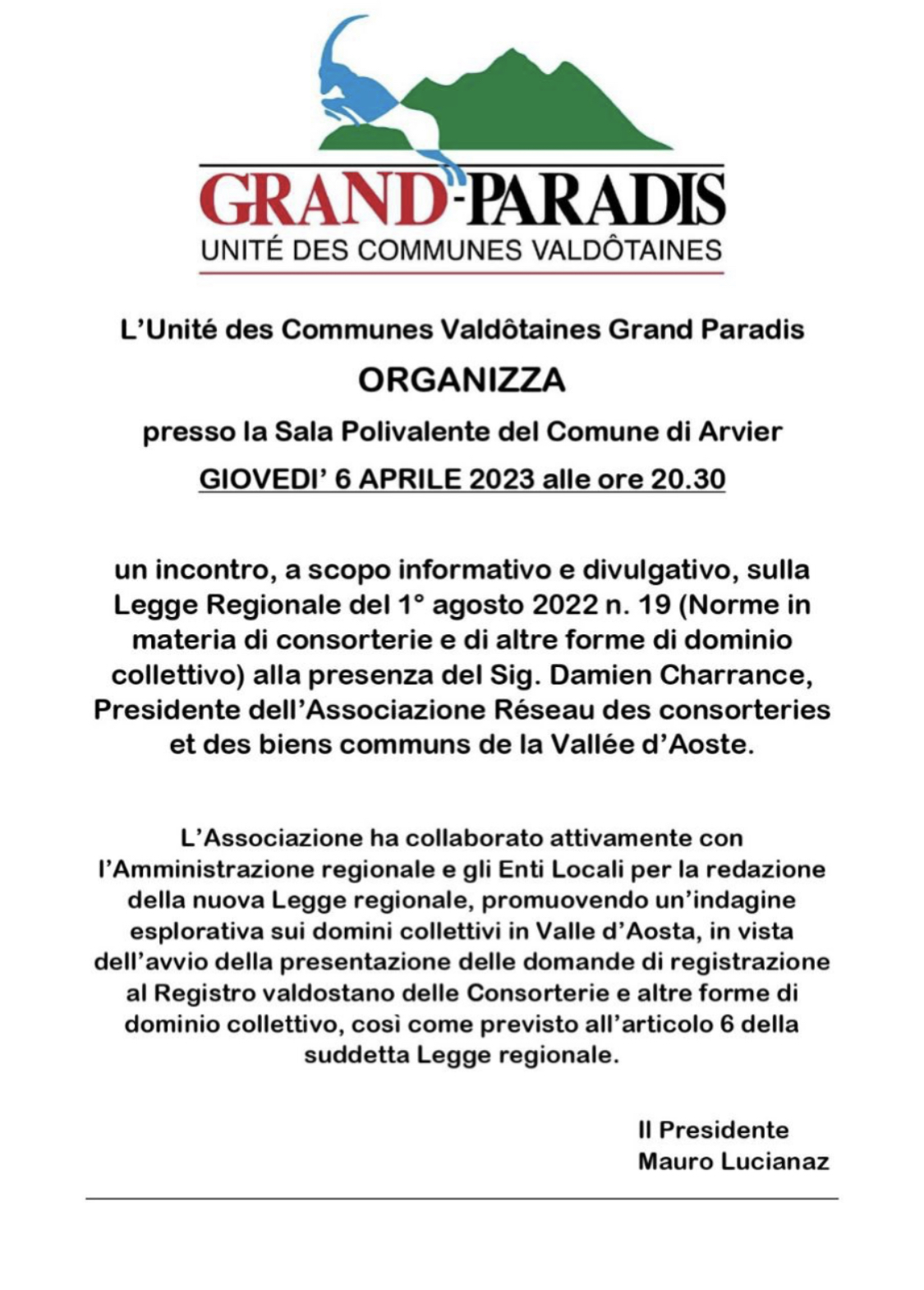 Giovedì 6 aprile 2023 alle ore 20.30 un incontro informativo sulle Norme in materia di consorterie e di altre forme di dominio collettivo.