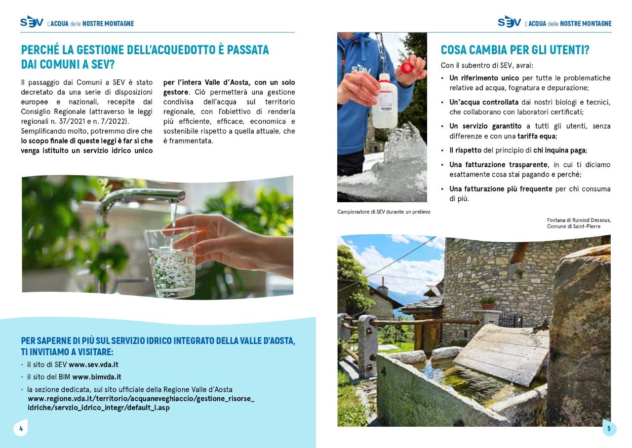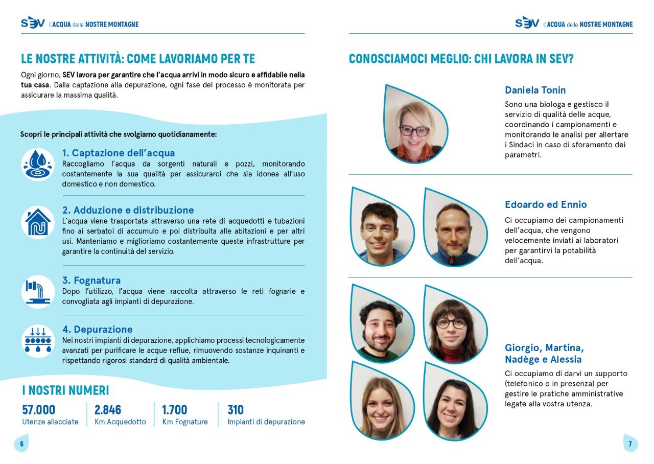 SEV è il nuovo gestore del Servizio Idrico Integrato della Valle d’Aosta. Si occupa di: