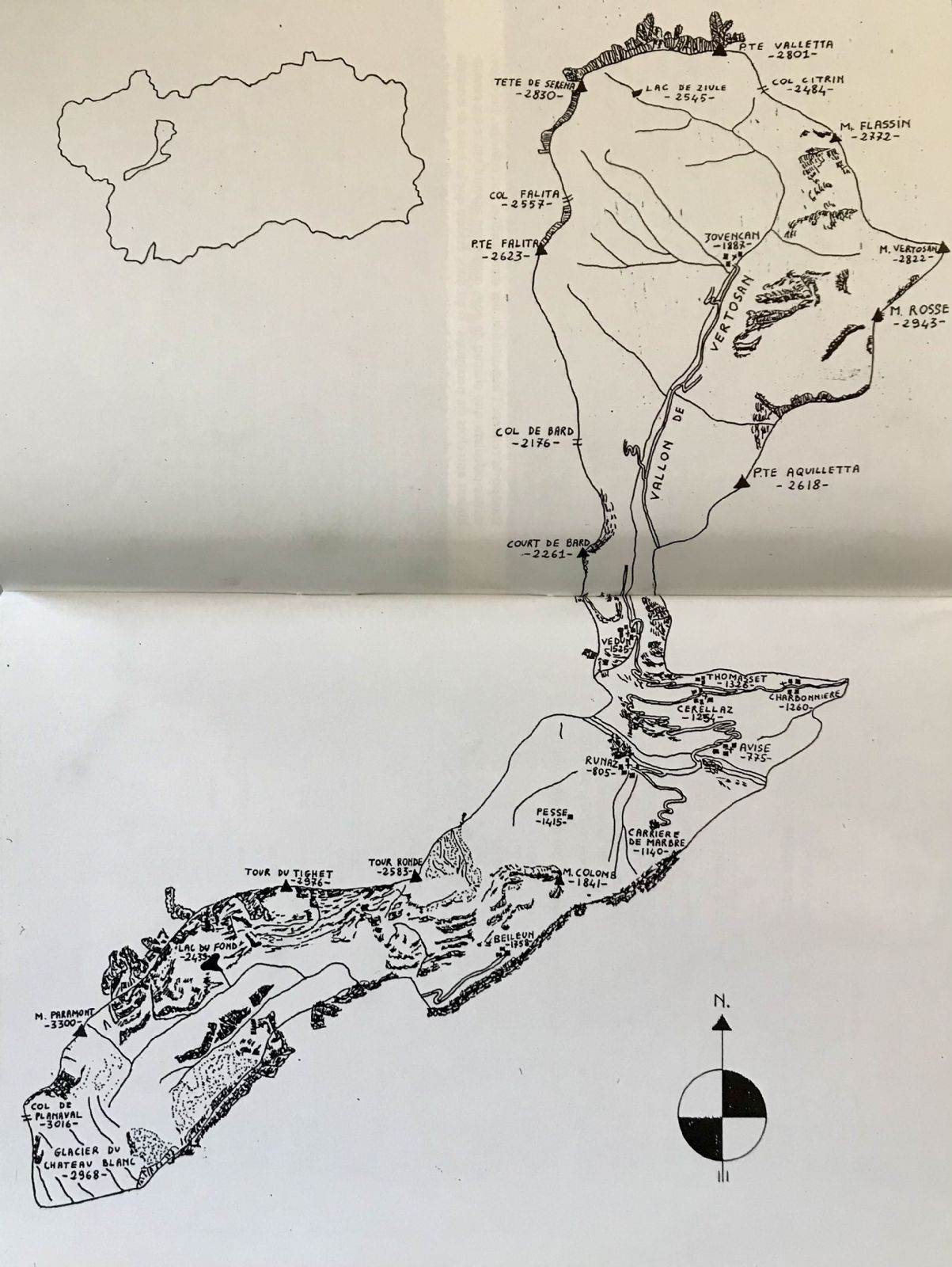 La sinistra orografica, l’adret, è caratterizzata dal Vallone di Vertosan con le sue ampie distese di pascoli. La soleggiata conca comprende i laghetti di Zioule e Leysser, nonché il Col de Bard, il Col Serena ed il Col Citrin.